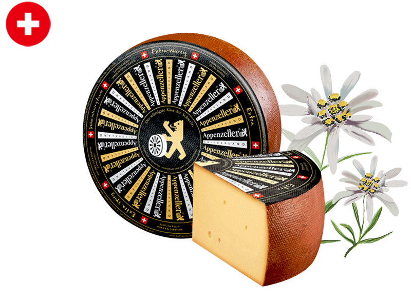 Appenzeller® Extra is a bold Swiss cheese with a rich, nutty flavour and a firm, yet supple texture. This extended aging allows it to develop distinct spicy and tangy notes, creating a wonderfully complex taste profile that finishes with a satisfying, slightly creamy sensation on the palate.