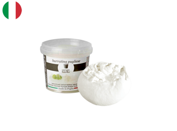 First produced by the Bianchini Family in the Apulia region in the 1920s, Burratina is prepared like Mozzarella. The key difference is that its white, creamy filling contains pieces of cream called stracciatella.