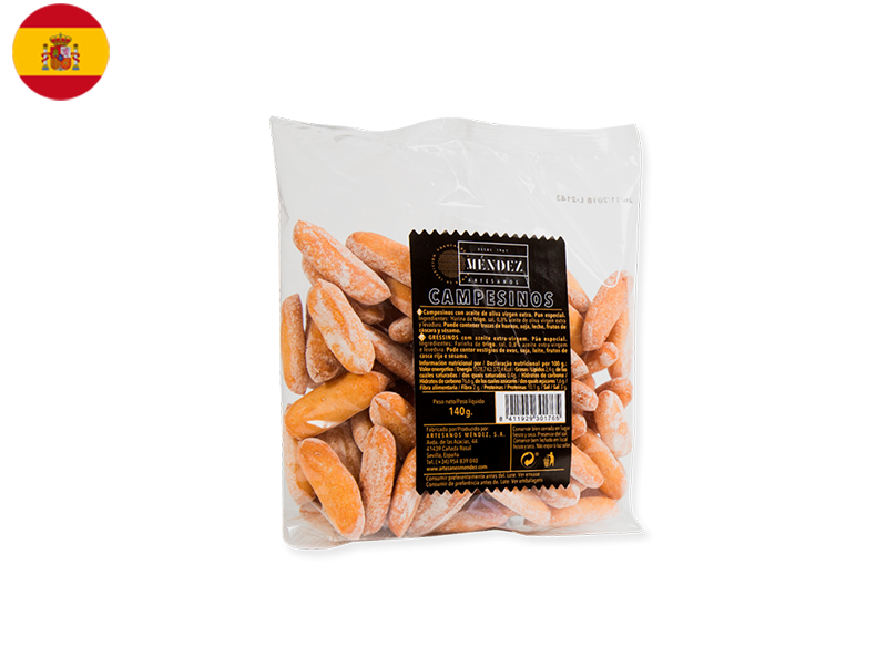 Campesinos breadsticks are a classic part of the tapas culture in Spain, a crunchy complement to the tasty small plates that are at the center of Spanish tapas. They are shaped like tiny loaves of bread, and have a firm bite and perfect saltiness.