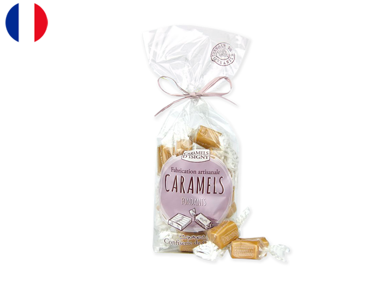 Caramels d’Isigny are crafted using top-notch regional ingredients: whole milk, Isigny PDO Butter, and Isigny PDO Cream, imparting a distinctive flavour to the caramel. This bag offers delightful PDO Isigny salted butter flavour.