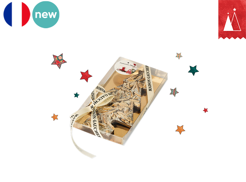 The Milk Chocolate Christmas Tree with Almonds by Maison Gaucher, combines creativity and indulgence. This Christmas tree-shaped milk chocolate offers a melting texture and a delicately balanced taste, enhanced by the crunch of almonds.