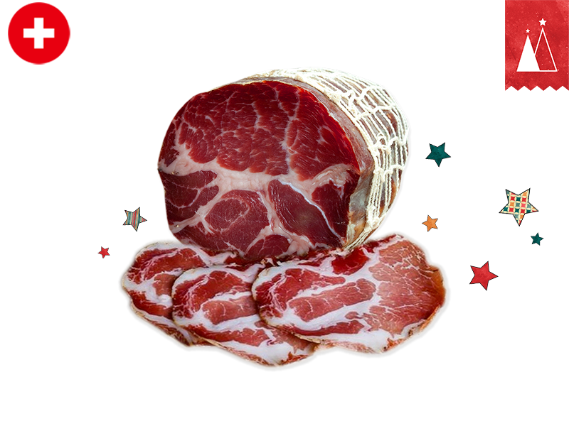The Smoked Coppa is an exquisite charcuterie crafted from marbled pork shoulder, renowned for its rich, delicate flavour and silky, melt-in-the-mouth texture. Each piece of Coppa is seasoned with a blend of herbs and spices, then smoked and air-dried slowly to enhance its complex aromas. This slow process allows the natural sweetness of the meat to mingle with subtle smoky notes, resulting in a flavour profile that is both bold and balanced.
