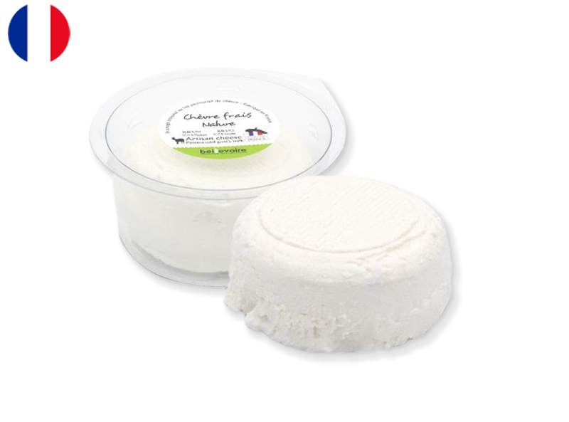 This goat cheese, made from pasteurised milk, is extra-fresh. It is presented in its cheese mold, with its pearly white paste that is moist and consistent. It complements salads, spreads, and appetizers exceptionally well. For a perfect pairing, savour it with a Sauvignon Blanc or a Pinot Gris. To maintain the freshness of this cheese, store it in your refrigerator. If needed, wrap it in cheese paper.