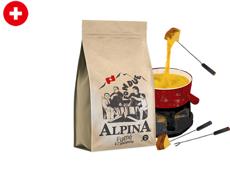 Fondue Alpina Fumée blends fine cheeses with a delicate smoky flavour that adds depth to the traditional Alpine dish. With a silky texture and rich, savoury taste, this fondue is perfect for warming up on a cold evening.