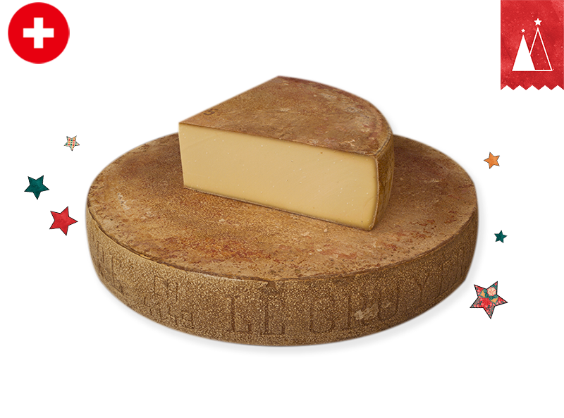 This Excellence Gruyère Cave-aged is the masterpiece of its category, standing out from the crowd by its ageing, over 15 to 18 months at least. This Gruyère follows a strict process for each of its production : The cheese master has to to return and brush the wheel every single day. This careful and precise process allows the cheese to get its fine taste.