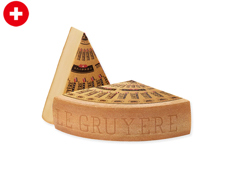 Gruyère Réserve AOP is a hard cow’s milk cheese from Switzerland that adheres to the Gruyère AOP specifications established in 2001. Also known as Surchoix, it distinguishes itself by its extended aging period of over 10 months, significantly longer than the younger, milder profiles aged a minimum of 5 months.