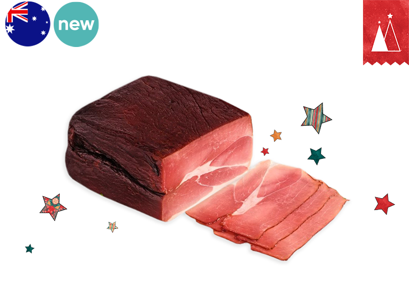 Discover the rich, smoky flavour of the Black Forest Ham. This ham is traditionally crafted using time-honoured methods, including a careful curing process and slow smoking over sawdust from native fir and pine trees, which gives it a distinctive dark exterior and unparalleled aroma.