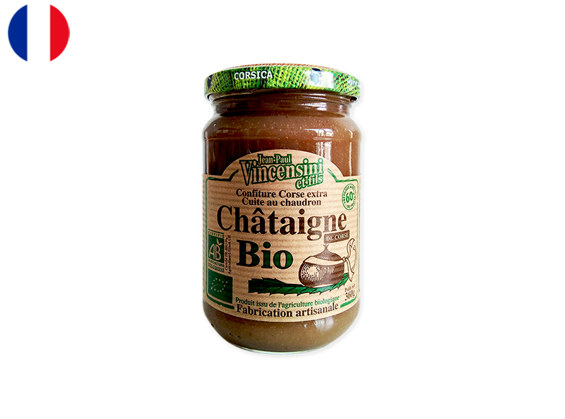 Produced by the family-owned Castagna di Vallerustie in San-Lurenzu, Corsica, this organic chestnut jam showcases the island’s rich culinary heritage. Since 2002, the company has specialised in crafting jams from local fruits using traditional methods that preserve authentic flavours. Made from locally sourced chestnuts, the jam offers a true taste of Corsica, where chestnuts have long been valued as the “bread of the forest” and a staple of rural life.