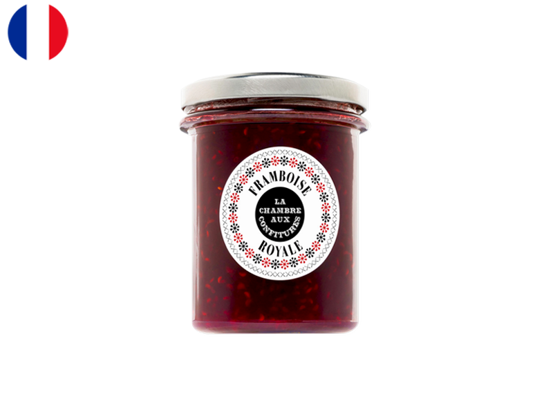 Crafted using premium seasonal fruits and champagne, this Raspberry Jam embodies a delightful blend of fruitiness and effervescence. Its texture is reminiscent of a light, nearly frothy raspberry puree, enhanced by the tangy essence of cooked champagne.