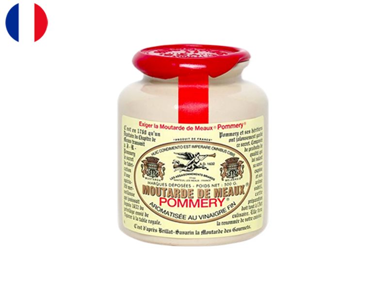Moutarde de Meaux Pommery is renowned French mustard from Meaux, where production dates to 771 AD. Crafted with a traditional recipe unchanged since 1632, using mustard seeds, vinegar, salt, and spices.