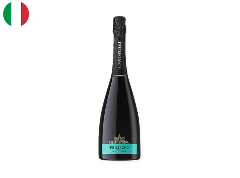 Prosecco DOC, Borgo Imperiale Brut is a dry, sparkling wine from Italy’s Veneto region, made from Glera grapes. It features fine bubbles and bright flavours of green apple, citrus, and white flowers, culminating in a crisp, refreshing finish.