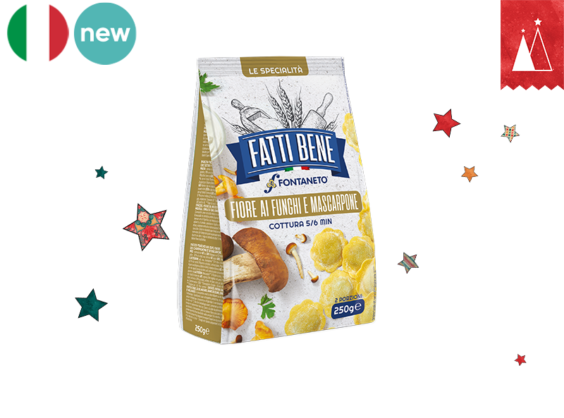 Enjoy the earthy richness of our Fiore with Mushroom and Mascarpone Ravioli. Each piece is filled with a savoury, fragrant mushroom mix, combined with smooth, mild mascarpone cheese. The tender pasta is the perfect match for this rich and comforting flavour, making every bite feel special.
