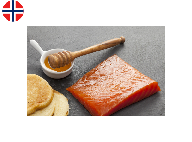 This salmon flank is coated with honey before being smoked. The honey creates a tension on the surface that encloses the oil of the salmon (omega 3) inside the flesh during the smoking process, resulting in an extra melting texture.